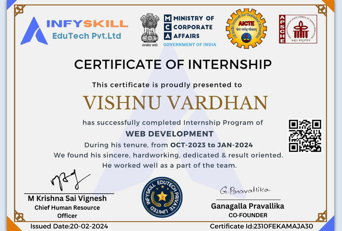 * Completed a web development internship, gaining hands-on experience in building responsive websites and optimizing user interfaces.
